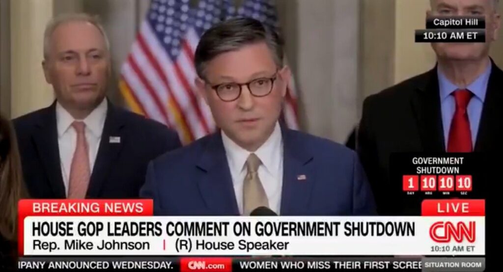 Fake News CNN cut off House Speaker Mike Johnson on Thursday as he attacked the Democrats for shutting down the government over healthcare funding for illegal aliens.