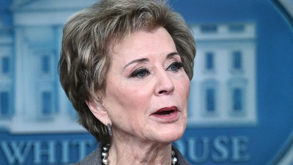 US Secretary of Education Linda McMahon speaks during the daily briefing in the Brady Briefing Room of the White House in Washington, DC, on November 20, 2025. The Department of Education was sued earlier this year over issues related to student loan forgiveness and repayment plans. (Photo by Brendan SMIALOWSKI / AFP) (Photo by BRENDAN SMIALOWSKI/AFP via Getty Images)