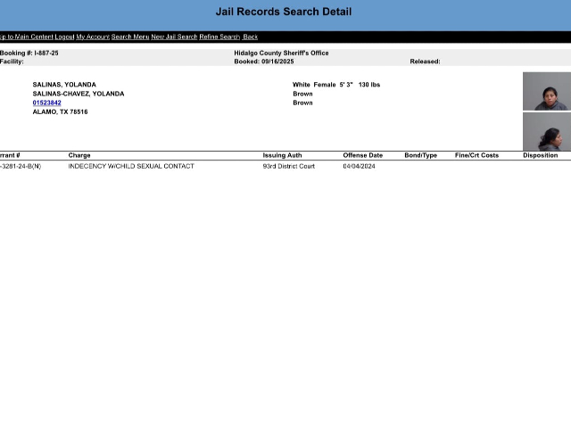 The case began on April 4, 2024, when McAllen Police arrested Yolanda Salinas on child indecency charges. Following the arrest, a magistrate judge in McAllen set her bond at $2,500. Two days later, U.S. immigration authorities placed an immigration detainer on her.