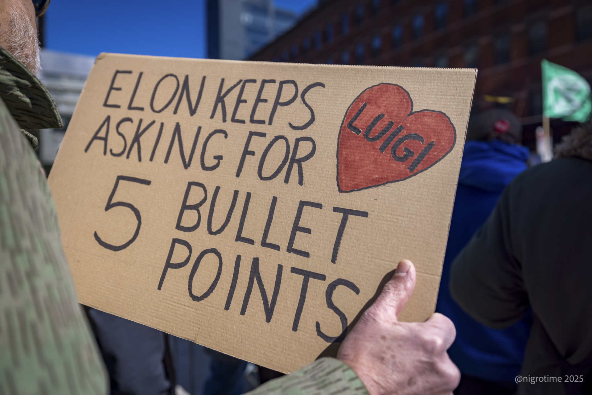 A leftwing protestor holds a sign outside a Tesla showroom in Manhattan on March 8, 2025. (Michael Nigro/Pacific Press/LightRocket via Getty Images)