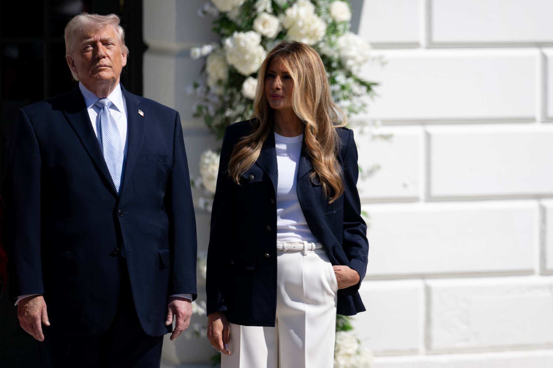 First Lady Melania Trump hosted the annual Easter Egg Roll on the White House’s South Lawn on Monday, wearing a chic nautical ensemble fit for spring in Cape Cod.