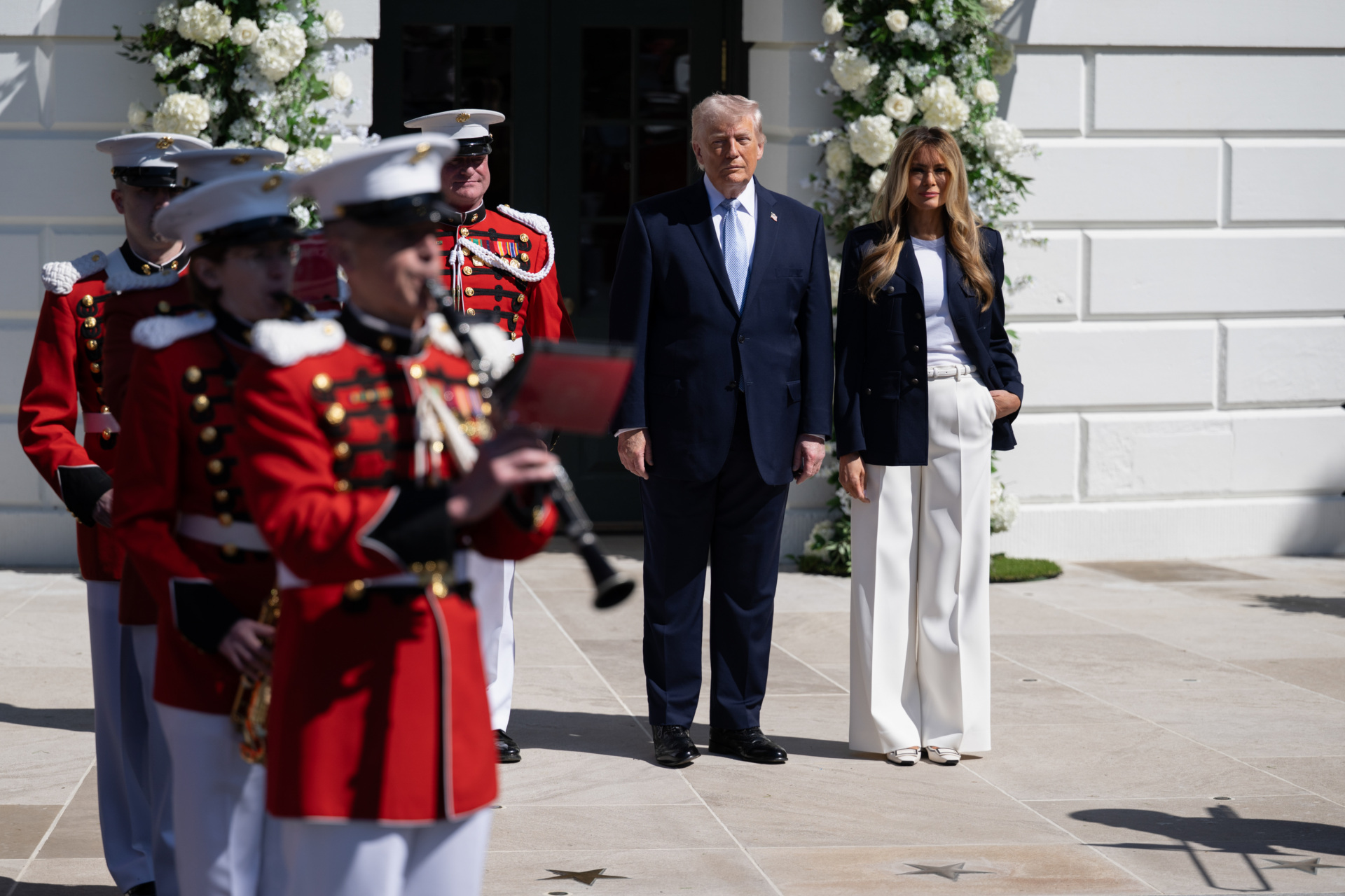 WASHINGTON, DC – APRIL 06: U.S. President Donald Trump and first lady Melania Trump arrive to greet guests a the White House Easter Egg Roll on April 06, 2026 in Washington, DC. The Easter Egg Roll is a White House tradition dating back to 1878. The Trumps also honored the 250th anniversary of the United States during the event. (Photo by Anna Moneymaker/Getty Images)