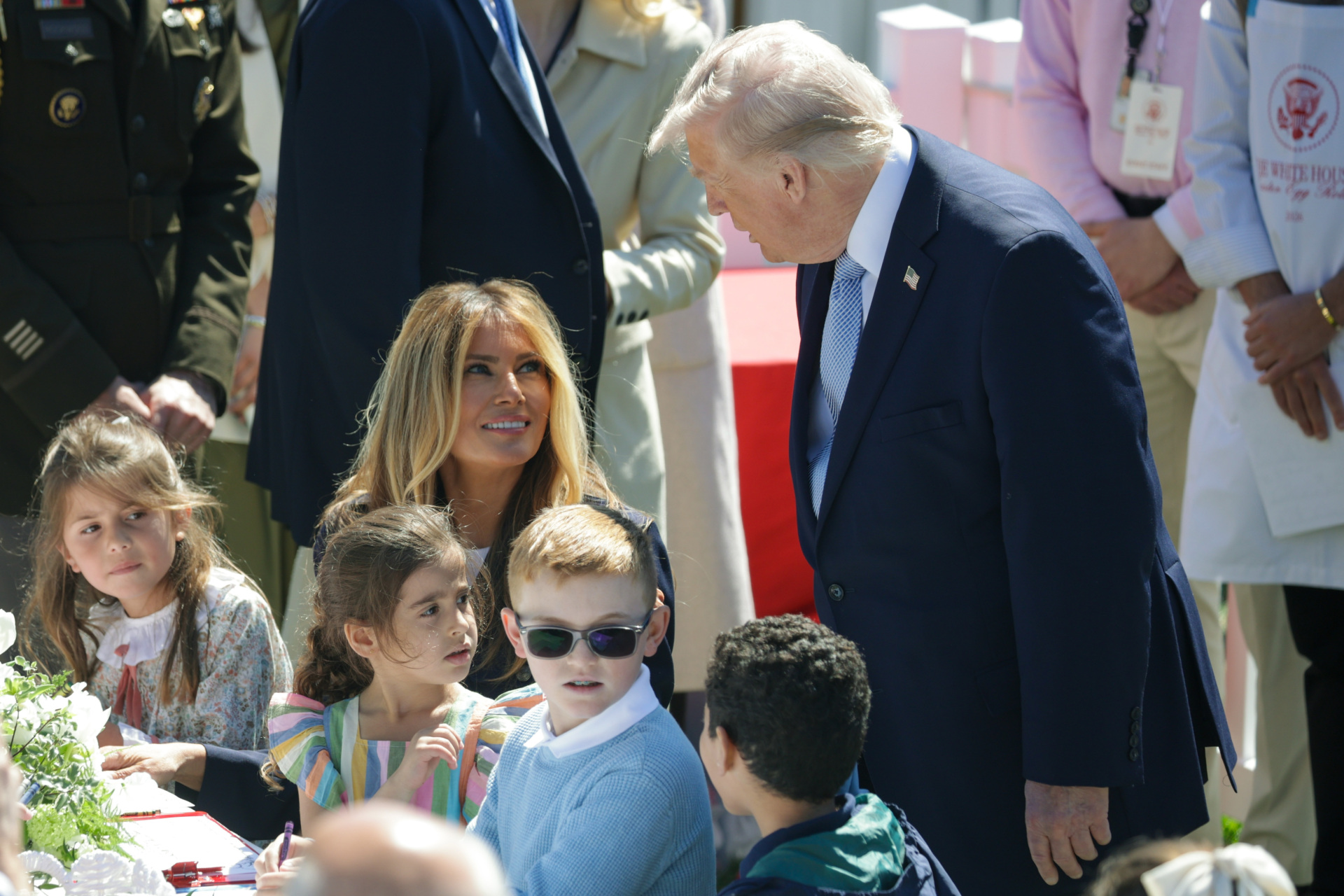 US President Donald Trump and First Lady Melania Trump greet children during the annual Easter Egg Roll on the South Lawn of the White House on April 6, 2026, in Washington, DC. (Photo by SAUL LOEB / AFP via Getty Images)