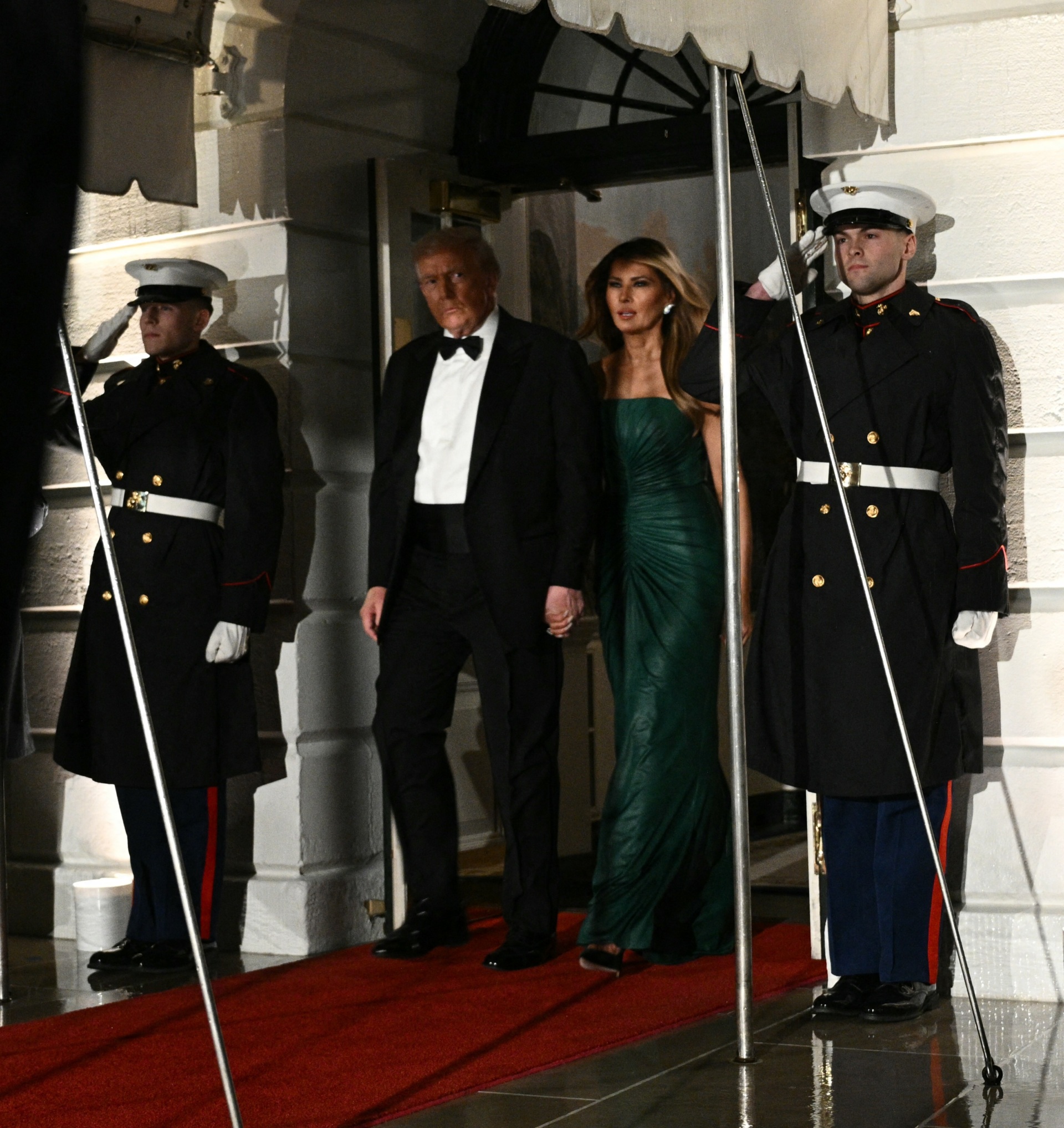 US First Lady Melania Trump, accompanied by President Donald Trump, waits for the arrival of the Crown Prince and Prime Minister of the Kingdom of Saudi Arabia Mohammed bin Salman prior to a state dinner at the White House in Washington, DC on November 18, 2025. (Photo by ANDREW CABALLERO-REYNOLDS / AFP) (Photo by ANDREW CABALLERO-REYNOLDS/AFP via Getty Images)