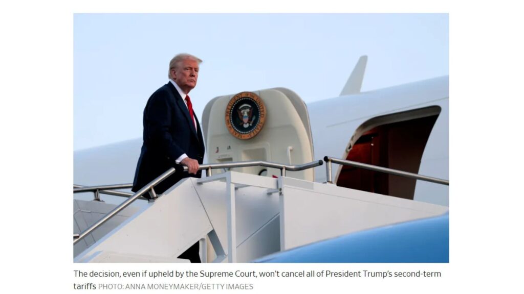 It’s not over yet, but the Wall Street Journal reports Appeals Court Rejects Trump’s Global Tariffs.