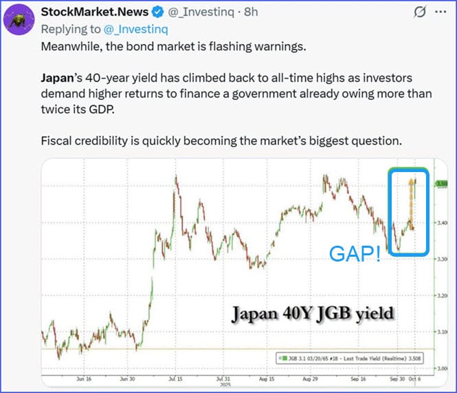 As I wrote a bit later in that bit, “In practice, what that would look like is a decline in the price of long-dated government paper (bonds) and a corresponding spike in interest rates, with a concomitant shift to purchasing the stocks and bonds of the domestic corporations.”