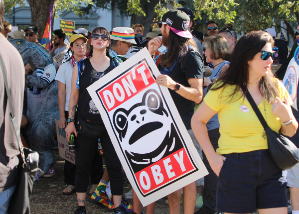 Frog “Don’t Obey” sign in San Antonio (Randy Clark/Breitbart Texas)