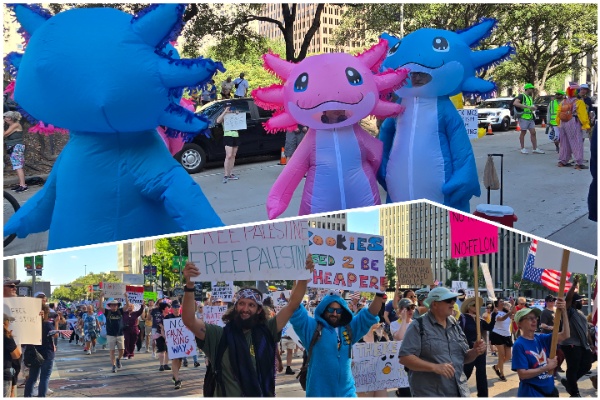 A mix of inflatable characters march in Houston and San Antonio No-Kings Protests (Randy Clark/Lana Shadwick/Bob Price, Breitbart Texas)