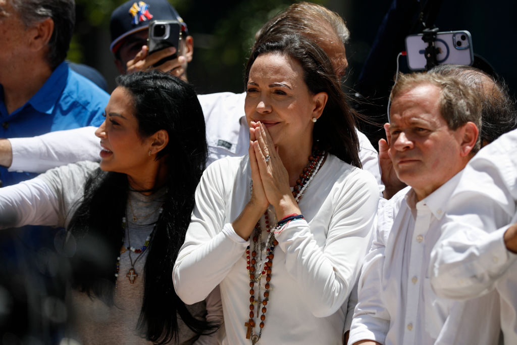 File/Venezuelan opposition leader Maria Corina Machado acknowledges the crowd during a rally in Caracas on August 28, 2024. (PEDRO RANCES MATTEY/AFP via Getty Images)