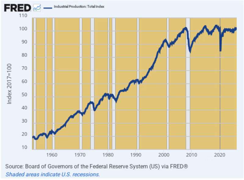 Thus, between 1954 and 1969, the industrial production index rose by a robust 4.5% per annum. During the years since the debt-fueled financial crisis of 2008, however, there has been no growth at all in the industrial sector of the US economy.