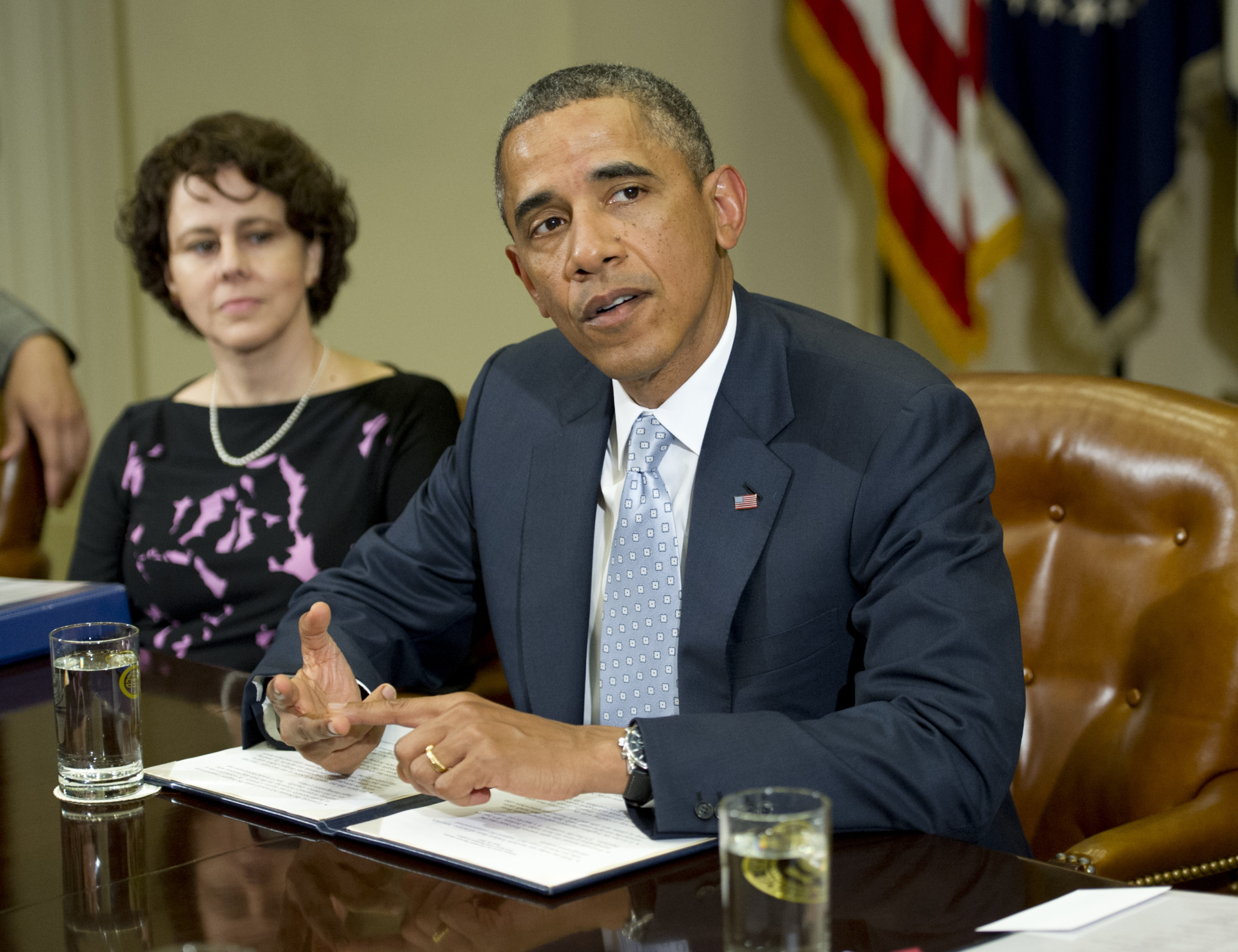 President Barack Obama, right, with his Director of the Domestic Policy Council Cecilia Muñoz, speaks to the press prior to a meeting with CEOs about immigration reform on June 24, 2013 in Washington, DC. (Ron Sachs/Getty Images)