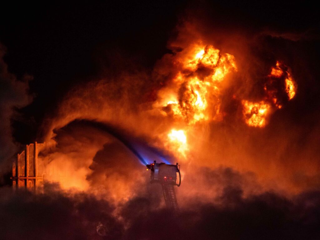 A massive explosion caused a fire to break out at a Chevron facility in El Segundo, in Los Angeles, California, on Thursday evening.