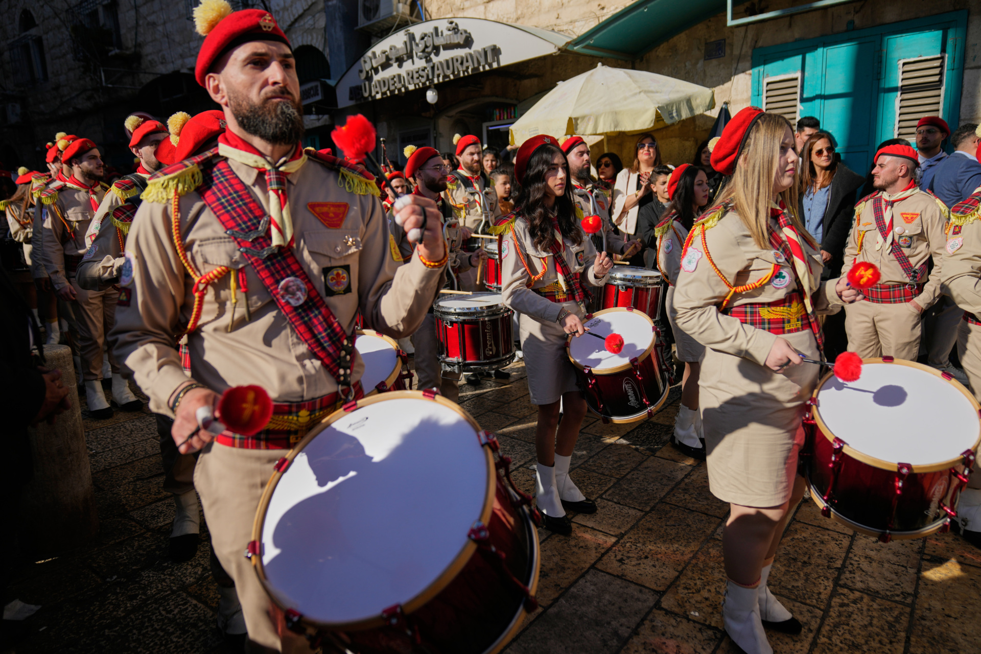 Irene Kirmiz, who grew up in Bethlehem and lives in Ramallah, said the scout parade is among her favorite Christmas traditions. Her 15-year-old daughter plays the tenor drum with the Ramallah scouts.