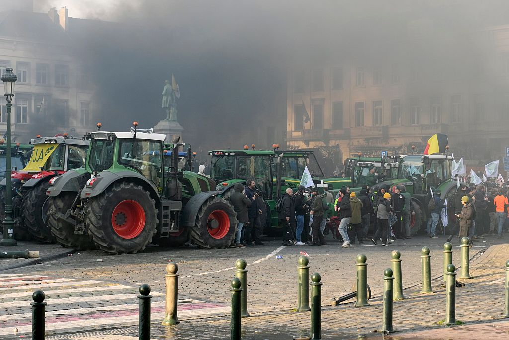 A government-authorised protest for 50 tractors in Brussels turned into a demonstration with “around 1,000” tractors present and over 7,000 farmers on Thursday. While the protest largely passed off without incident, there were clashes at the European Parliament building, where farmers threw potatoes and eggs and received tear gas and water canon in return.