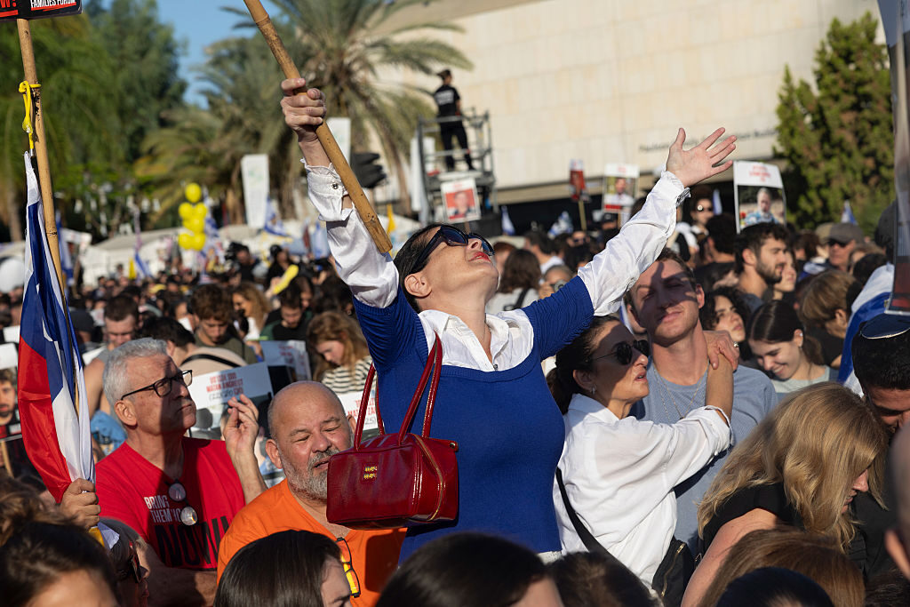 Israelis gathered at Hostage Square in Tel Aviv, with many performing the celebratory rituals of the Jewish holiday of Sukkot. Tradition holds that wishes come true on the sixth day of the holiday, which falls Monday.