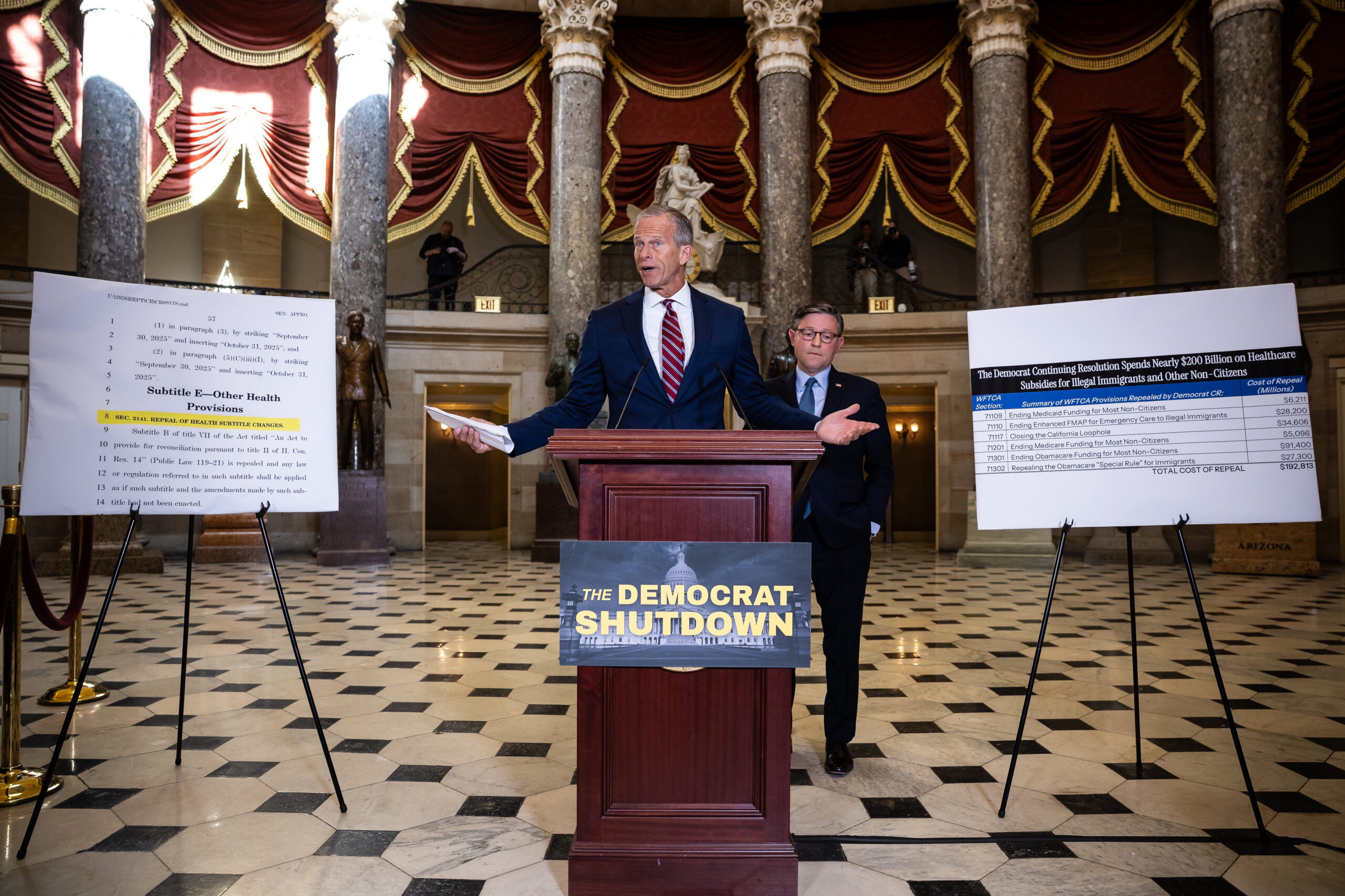 Therein lies the chicken-and-egg nature of the stalemate: Democrats are demanding a deal on the insurance subsidies to reopen the government, while Republicans insist there can be no deal so long as the government is closed. Thune and Speaker Mike Johnson held a joint new conference on Friday morning to reiterate that message.