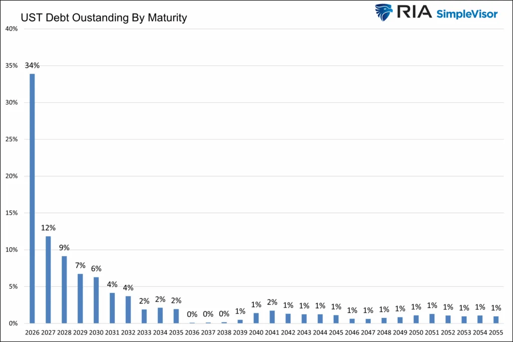 About $9.2 trillion in US Treasuries rolled over in fiscal 2025 – roughly a third of all outstanding federal debt – and the 2026 refinancing wave is already building. Annual interest payments on the federal debt have crossed $1 trillion for the first time. The Treasury is buying back its own debt in tranches to keep the market from seizing up. But the 10-year yield keeps moving higher regardless.