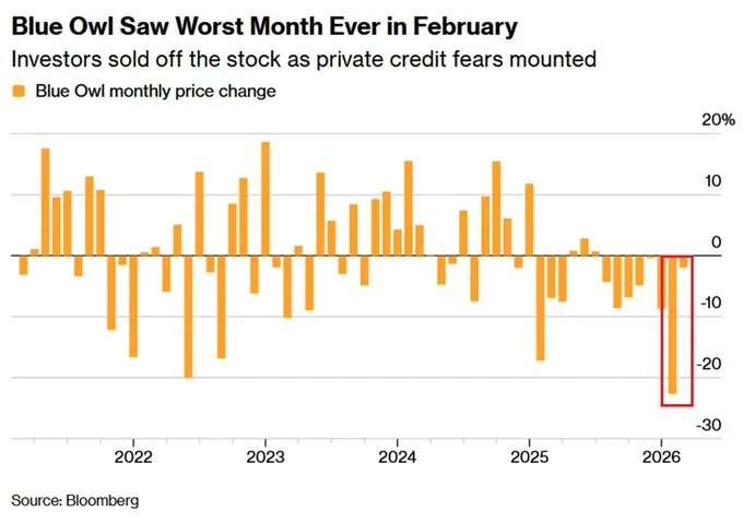 Blue Owl gated its retail private credit fund in February after redemption requests doubled through 2025. Today, BlackRock announced its $26 billion private credit fund is limiting withdrawals too [-4% at the open]. The same BlackRock that just wrote a private loan to zero – a loan marked at par three months ago. The second time it’s done that.