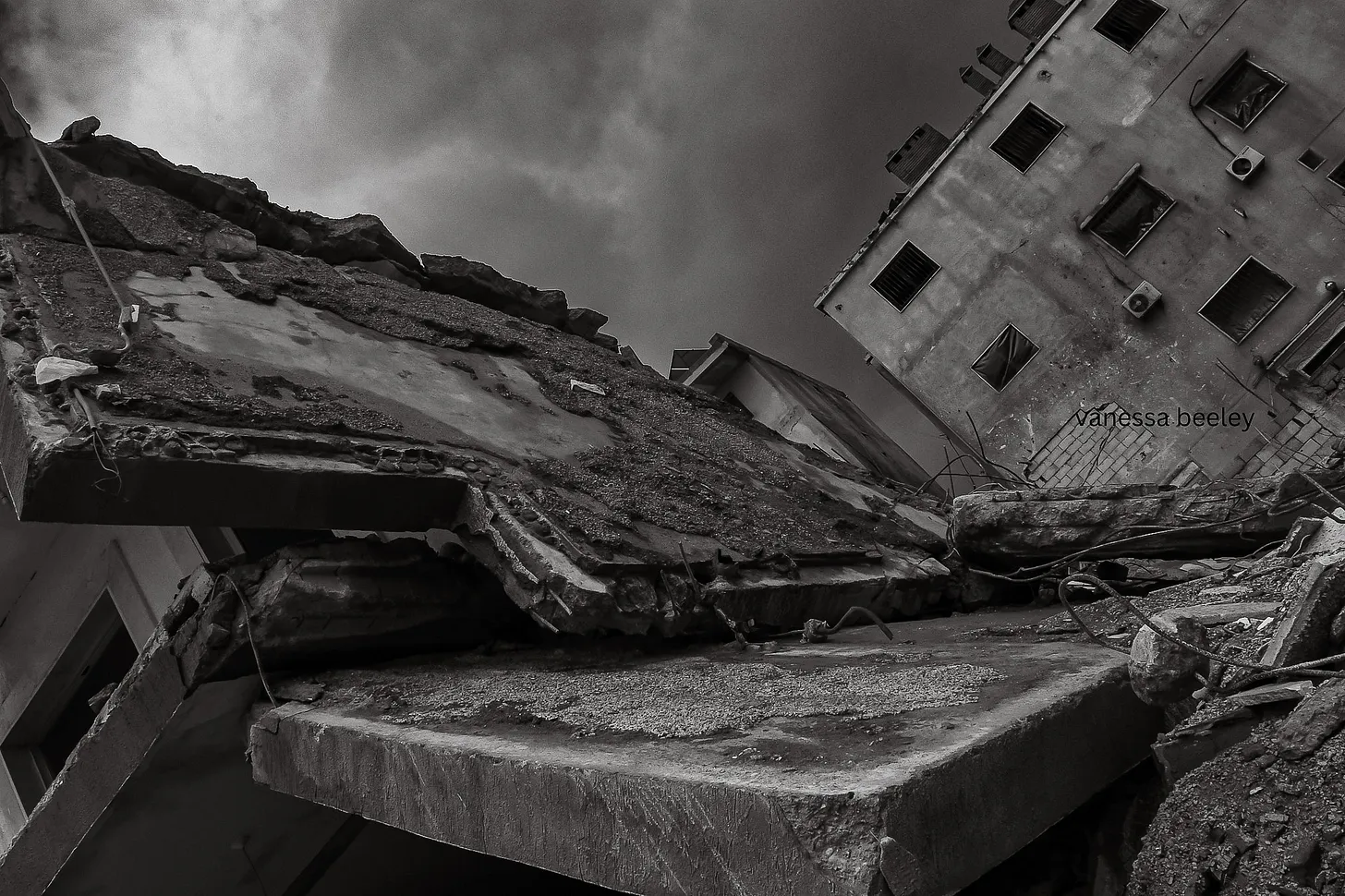 A four storey apartment block bombed by ‘Israel’ at dawn. Photo: Vanessa Beeley