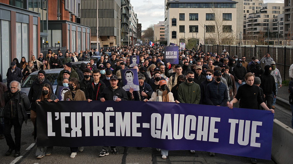 The march in tribute to Deranque featured banners reading ‘Justice for Quentin’, ‘The far-left kills’, ‘Antifa murderers,’ and ‘Jeune Garde in prison, free the city of Lyon’. Videos on social media show people laying flowers at the spot where the activist was attacked.