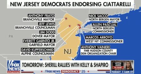 “Isn’t that right Miriam? Look at Miriam. She’s back there. Stand up. Miriam and Sheldon [Adelson] would come into the office and call me. They’d call me — I think they had more trips to the White House than anybody else, I guess. Look at her sitting there so innocently — got $60 billion in the bank, $60 billion. And she loves, and she, I think she said, ‘No, more.’ And she loves Israel, but she loves it. And they would come in. And her husband was a very aggressive man, but I loved him. It was a very aggressive, very supportive of me. And he’d call up, ‘Can I come over and see you? I’d say ‘Sheldon, I’m the president of the United States. It doesn’t work that way.’ He’d come in. But they were very responsible for so much, including getting me thinking about Golan Heights, which is probably one of the greatest things ever happened. Miriam, stand up, please. She really is, I mean, she loves this country. She loves this country. Her and her husband are so incredible. We miss him so dearly. But I actually asked her, I’m going to get her in trouble with this. But I actually asked her once, I said, ‘So Miriam, I know you love Israel. What do you love more? The United States or Israel?’ She refused to answer. That means — that might mean Israel, I must say, we love you. Thank you, darling, for being here. That’s a great honor. Great honor. She’s a wonderful woman. She is a great woman.”