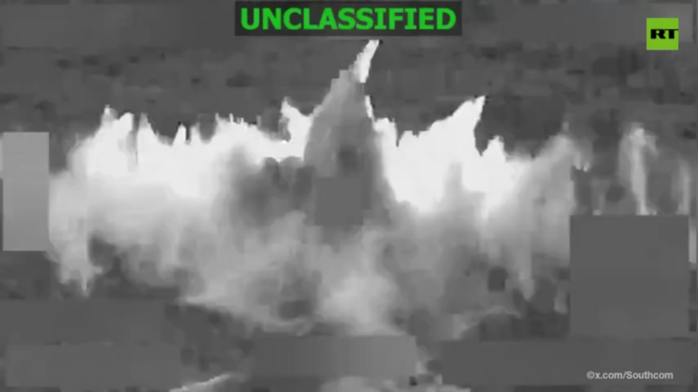 The command claimed, citing intelligence data, that the boat was moving along “known narco-trafficking routes” and “was engaged in narco-trafficking operations.” No US military forces were harmed in the strike, the statement added. The command also released a video showing a small-sized boat hit by two explosions at an unspecified location.