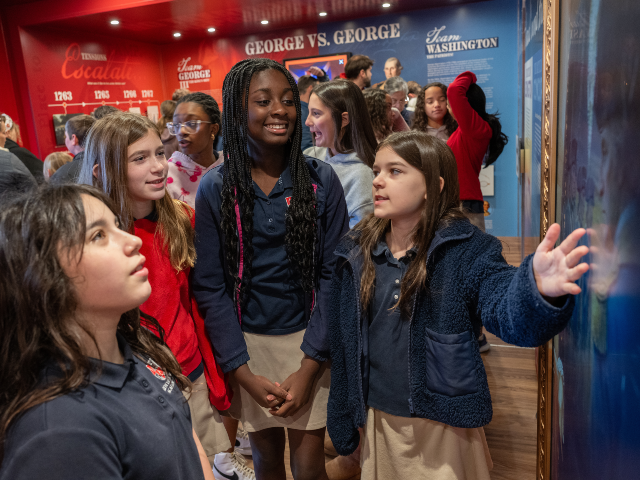 Simonian cited “the timelines, the incredible tech, the pictures that come to life,” before asking her audience, “How many got to talk to George Washington in there?”